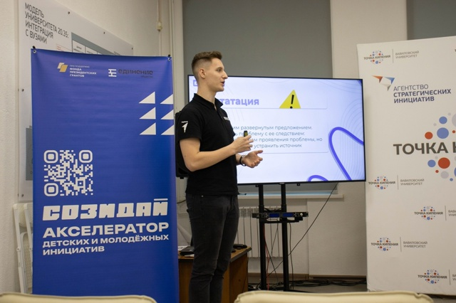 Вчера на площадке «Точки кипения» состоялось очередное обучающее занятие в рамках проекта «Акселератор детских и молодежных инцииатив «Созидай», участие в котором приняли студенты Вавиловского университета.