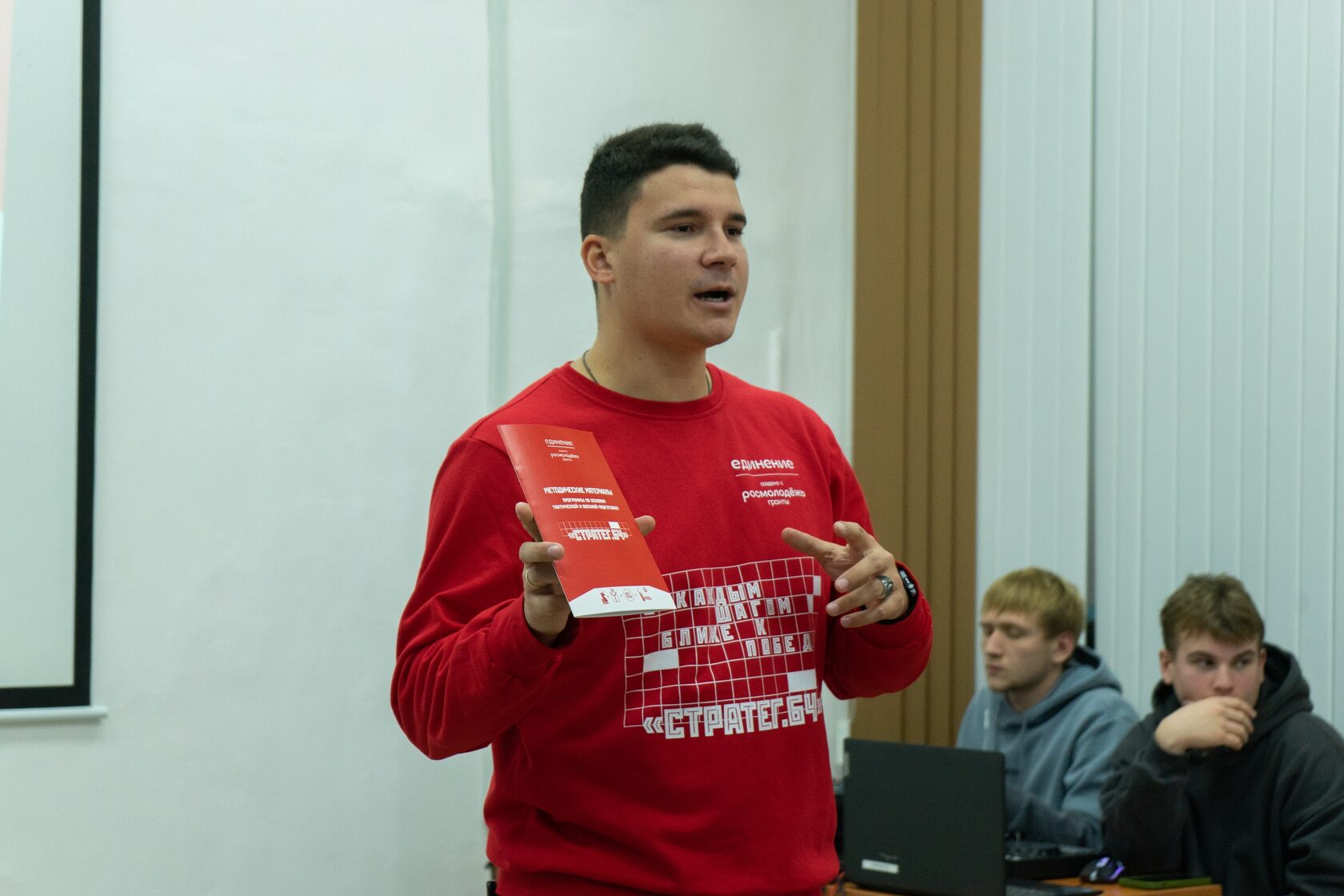 В рамках проводимого мероприятия член команды проекта, командир Волонтерской роты Боевого Братства Михаил Сегеда рассказал о возможностях участия в проекте и провел интеллектуальную игру в формате командного квиза. Каждый из его участников получили полезный раздаточный набор: блокноты и ручки для записей, а также методические материалы в формате сборника, который помог в ответах на вопросы.